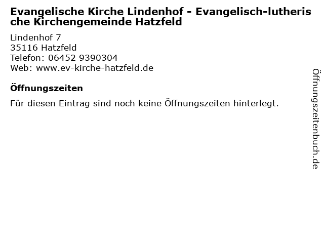 | Evangelische Kirche Lindenhof - Evangelisch-lutherische Kirchengemeinde Hatzfeld anrufen | |