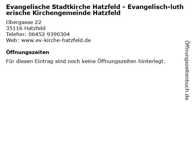 | Evangelische Stadtkirche Hatzfeld - Evangelisch-lutherische Kirchengemeinde Hatzfeld anrufen | |