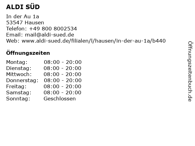 | Öffnungszeiten ALDI SÜD in Hausen anzeigen | |