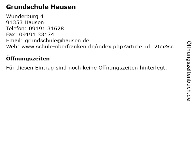 | Öffnungszeiten Grundschule Hausen in Hausen anzeigen | |