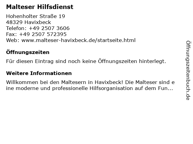 | Öffnungszeiten Malteser Hilfsdienst in Havixbeck anzeigen | |