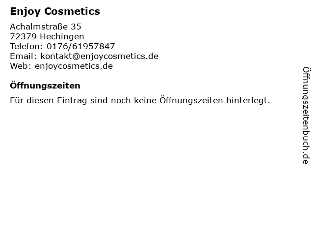 | Öffnungszeiten Enjoy Cosmetics in Hechingen anzeigen | |