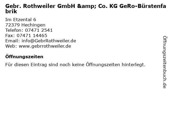 | Gebr. Rothweiler GmbH & Co. KG GeRo-Bürstenfabrik anrufen | |
