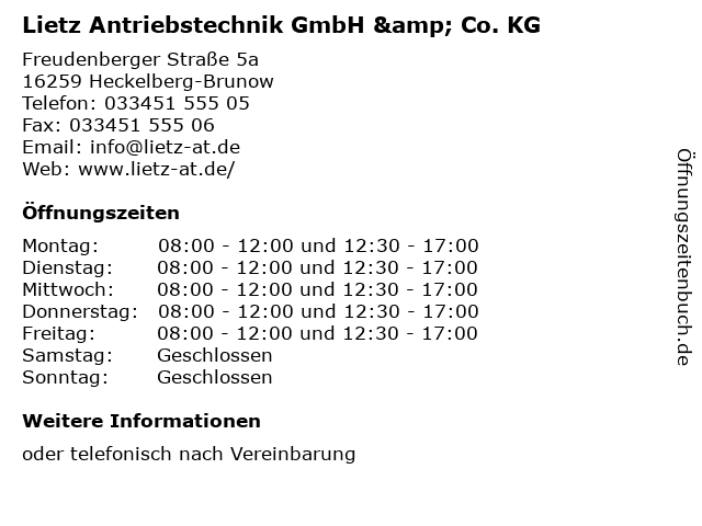 | Freitag | 08:00-12:00 und 12:30-17:00 |