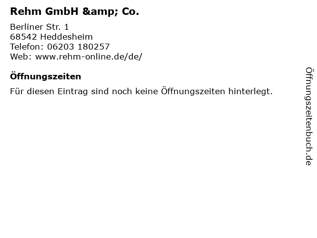 | Öffnungszeiten Rehm GmbH & Co. in Heddesheim anzeigen | |