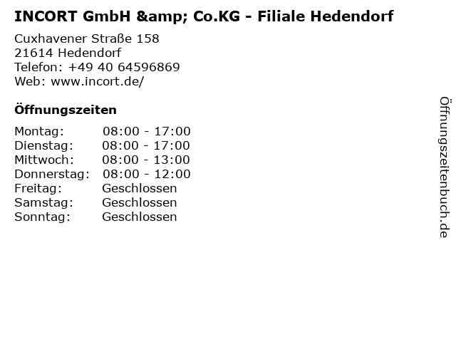 Branchen & Suchbegriffe zu INCORT GmbH & Co.KG - Filiale Hedendorf:co.kg, hedendorf, incort |