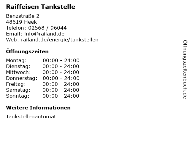 | Öffnungszeiten Raiffeisen Tankstelle in Heek anzeigen | |