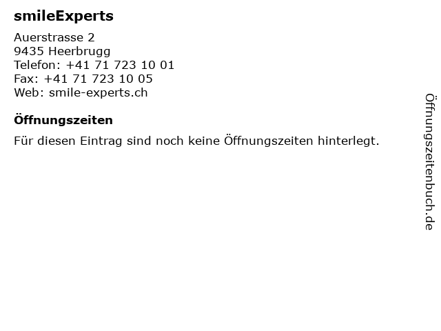| Öffnungszeiten smileExperts in Heerbrugg anzeigen | |