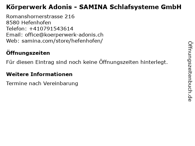 | Körperwerk Adonis - SAMINA Schlafsysteme GmbH anrufen | |