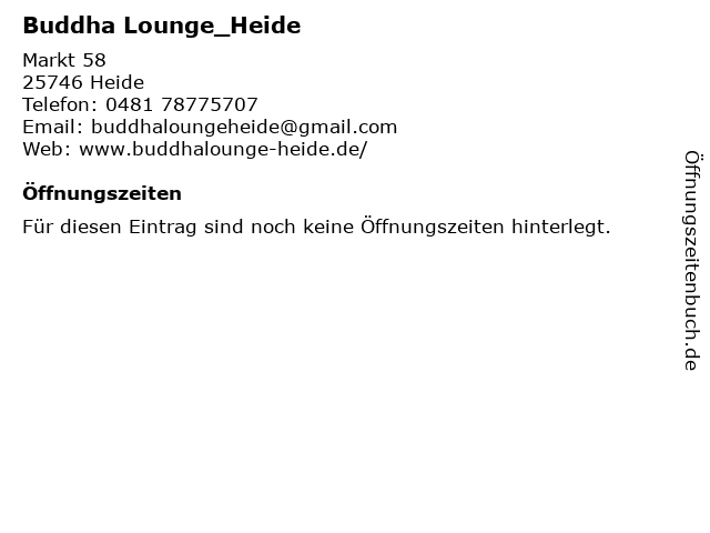 | Öffnungszeiten Buddha Lounge_Heide in Heide anzeigen | |
