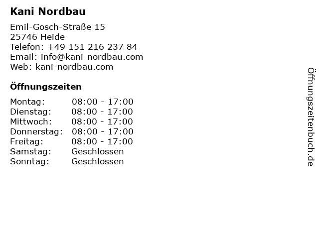 Öffnungszeiten Kani Nordbau in Heide anzeigen | |