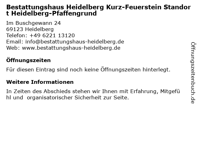 | Bestattungshaus Heidelberg Kurz-Feuerstein Standort Heidelberg-Pfaffengrund anrufen | |