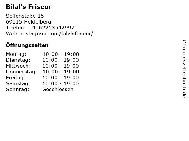 | Öffnungszeiten Bilal's Friseur in Heidelberg anzeigen | |