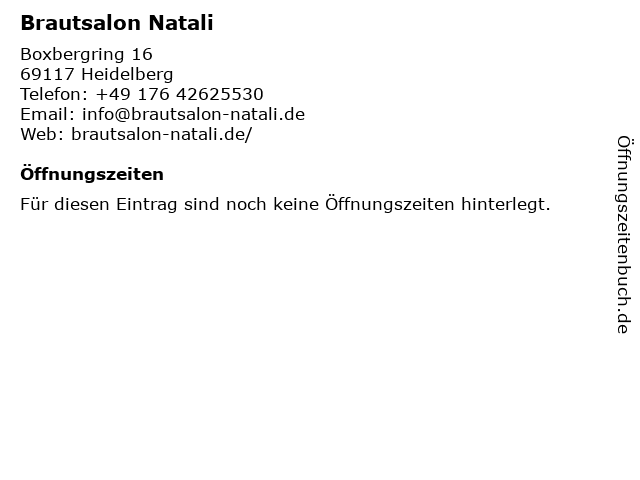 | Öffnungszeiten Brautsalon Natali in Heidelberg anzeigen | |