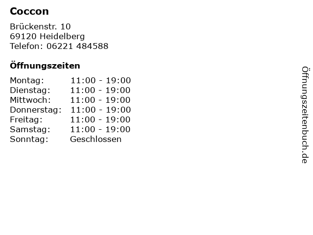 Öffnungszeiten Coccon in Heidelberg anzeigen