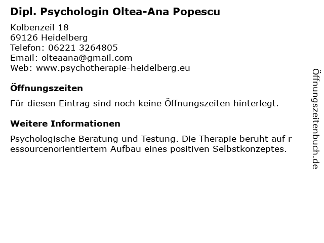 | Dipl. Psychologin Oltea-Ana Popescu anrufen | |