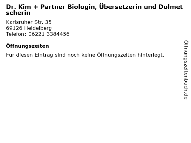 | Dr. Kim + Partner Biologin, Übersetzerin und Dolmetscherin anrufen | |