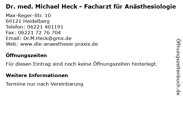 | Dr. med. Michael Heck - Facharzt für Anästhesiologie anrufen | |