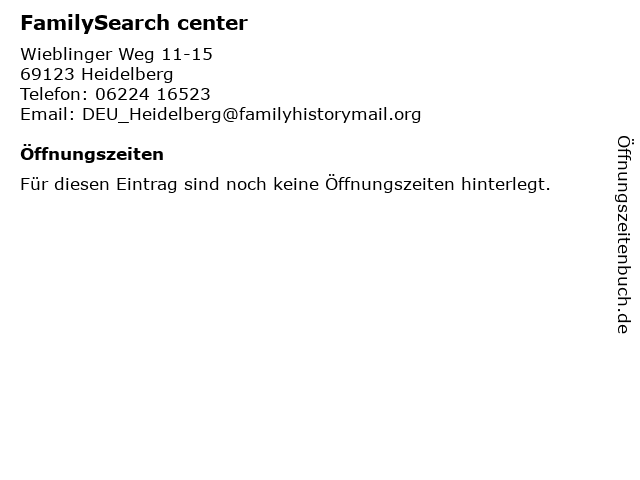 | Öffnungszeiten FamilySearch center in Heidelberg anzeigen | |