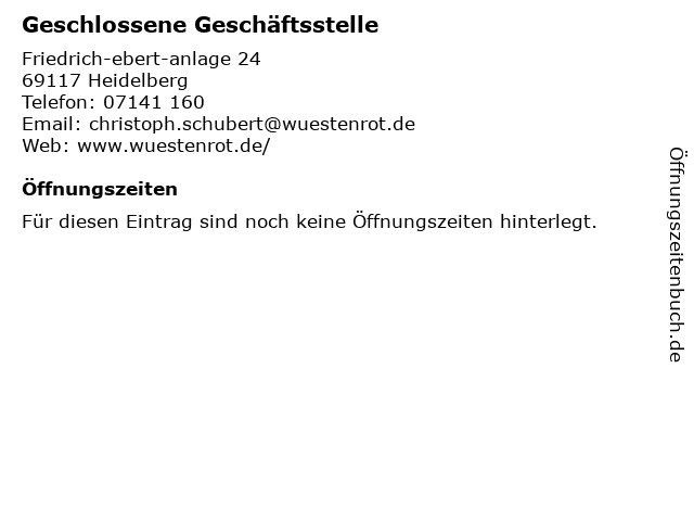 1 Wüstenrot Bausparkasse: Brigitte Knebel (Entfernung: 0,01 km) Friedrich-ebert-anlage 24, 69117 Heidelberg 2 Wüstenrot Bausparkasse: Stefan Knobloch (Entfernung: 0,01 km) Friedrich-ebert-anlage 24, 69117 Heidelberg 3 Wüstenrot Bausparkasse: Pascal Thompson (Entfernung: 0,01 km) Friedrich-ebert-anlage 24, 69117 Heidelberg 4 Wüstenrot Bausparkasse: Christian Offner (Entfernung: 0,01 km) Friedrich-Ebert-Anlage 24, 69117 Heidelberg 5 Wüstenrot Bausparkasse: Marina Metzler (Entfernung: 0,01 km) Friedrich-Ebert-Anlage 24, 69117 Heidelberg 6 Wüstenrot Bausparkasse AG Service Center (Entfernung: 0,03 km) Friedrich-Ebert-Anlage 24, 69117 Heidelberg |