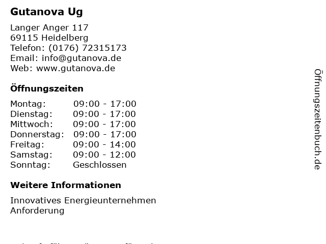 Öffnungszeiten Gutanova Ug in Heidelberg anzeigen | |