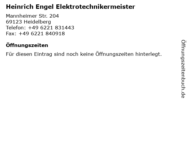 | Heinrich Engel Elektrotechnikermeister anrufen | |