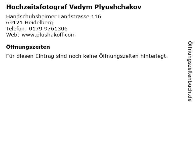| Hochzeitsfotograf Vadym Plyushchakov anrufen | |