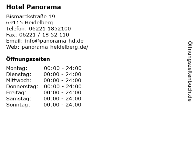 | Öffnungszeiten Hotel Panorama in Heidelberg anzeigen | |