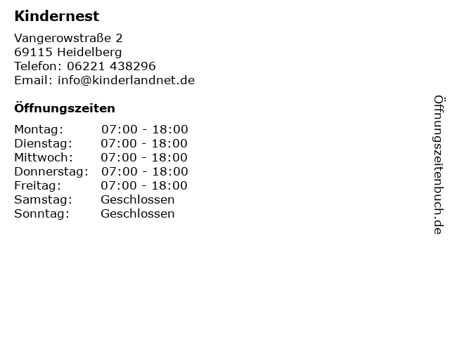 Öffnungszeiten Kindernest in Heidelberg anzeigen | |