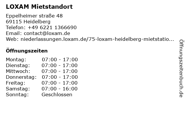 | Öffnungszeiten LOXAM Mietstandort in Heidelberg anzeigen | |