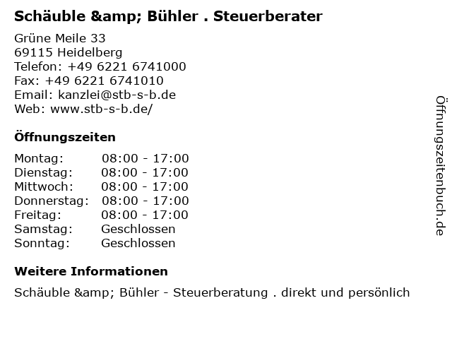 Branchen & Suchbegriffe zu Schäuble & Bühler . Steuerberater:betriebswirtschaftliche beratung, bilanzen, buchhaltung, bühler, digitale buchführung, einkommenssteuer, existenzgründungen, finanzbuchhaltung, jahresabschlüsse, nachfolgeregelung, schäuble, steuerberater, steuerberater in heidelberg, steuerberatung, steuerberatung heidelberg, steuerberatungskanzlei, steuerbüro, steuererklärungen, steuern, unternehmensberatung, wirtschaftsberatung, ärzteberatung |