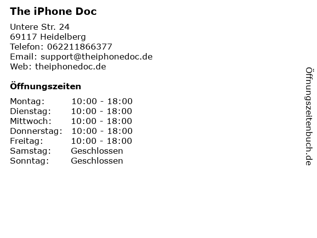 | Öffnungszeiten The iPhone Doc in Heidelberg anzeigen | |