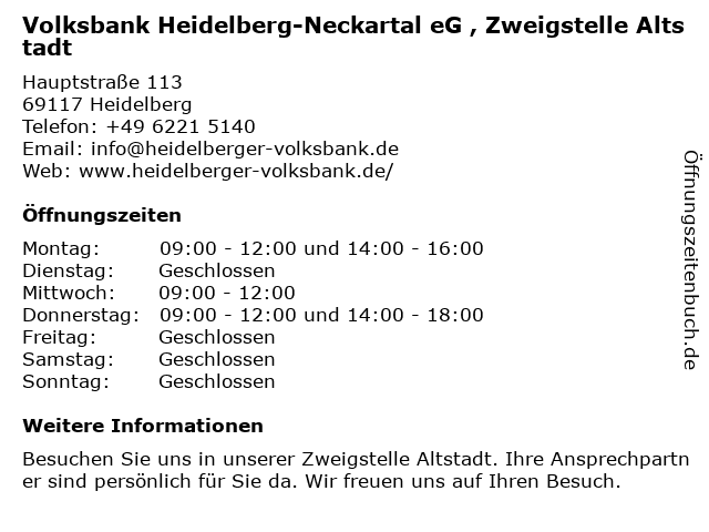 Branchen & Suchbegriffe zu Volksbank Heidelberg-Neckartal eG , Zweigstelle Altstadt:altersvorsorge, altstadt, bank, baufinanzierung, eg, geldanlage, geldautomat, girokonto, immobilien, kredit, kreditkarte, neckartal, versicherung, volksbank, zweigstelle |