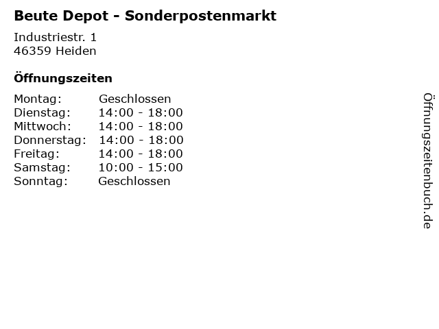 | Öffnungszeiten Beute Depot - Sonderpostenmarkt in Heiden anzeigen | |