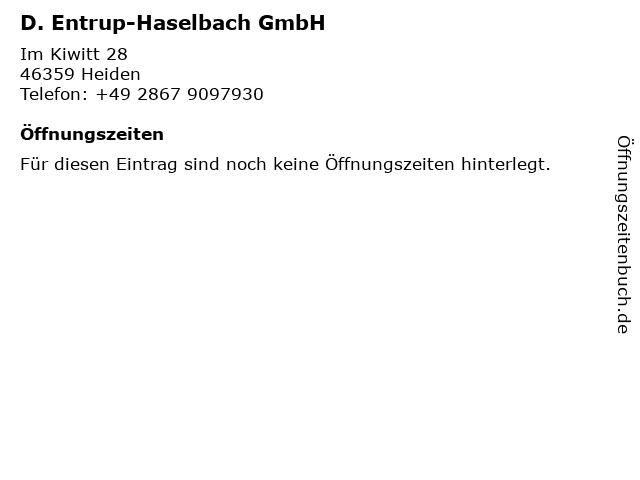 | Öffnungszeiten D. Entrup-Haselbach GmbH in Heiden anzeigen | |