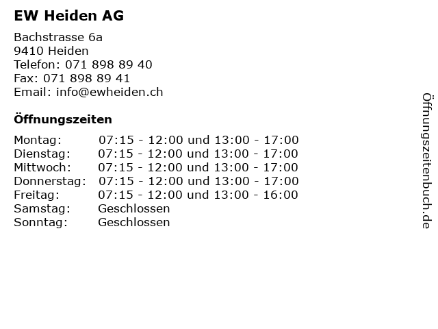 | Öffnungszeiten EW Heiden AG in Heiden anzeigen | |