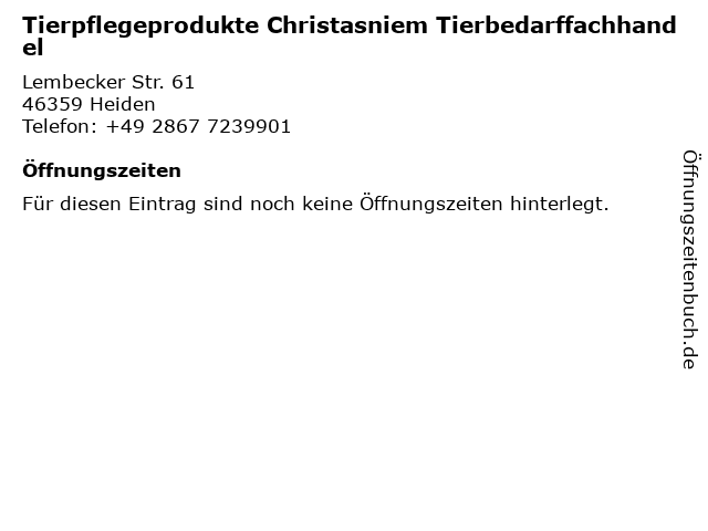 | Tierpflegeprodukte Christasniem Tierbedarffachhandel anrufen | |