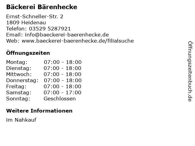 | Öffnungszeiten Bäckerei Bärenhecke in Heidenau anzeigen | |