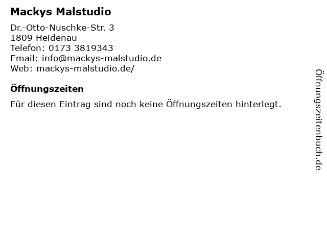 | Öffnungszeiten Mackys Malstudio in Heidenau anzeigen | |