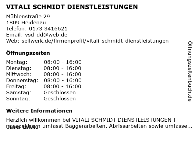 Branchen & Suchbegriffe zu VITALI SCHMIDT DIENSTLEISTUNGEN:dienstleistungen, schmidt, vitali |