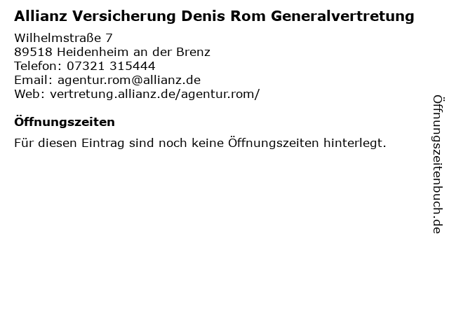 | Allianz Versicherung Denis Rom Generalvertretung anrufen | |