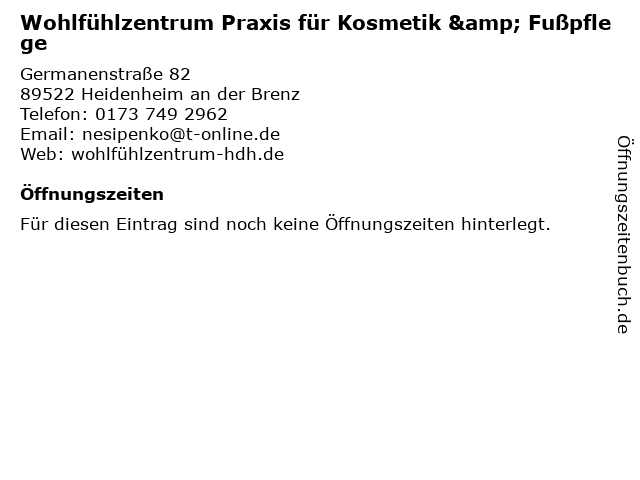| Wohlfühlzentrum Praxis für Kosmetik & Fußpflege anrufen | |