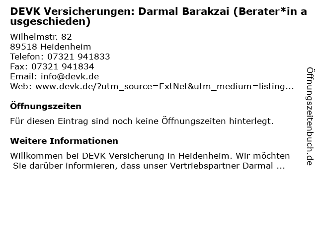 | DEVK Versicherungen: Darmal Barakzai (Berater*in ausgeschieden) anrufen | |
