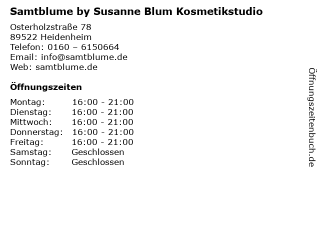 Branchen & Suchbegriffe zu Samtblume by Susanne Blum Kosmetikstudio:blum, by, hautpflege, kosmetik, kosmetikstudio, samtblume, schönheit, schönheitssalon, susanne |