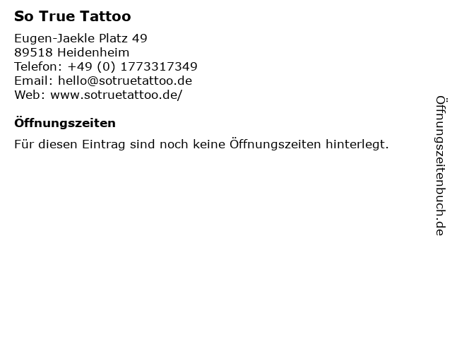 | Öffnungszeiten So True Tattoo in Heidenheim anzeigen | |