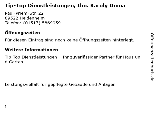 | Tip-Top Dienstleistungen, Ihn. Karoly Duma anrufen | |