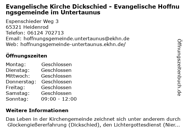 Branchen & Suchbegriffe zu Evangelische Kirche Dickschied - Evangelische Hoffnungsgemeinde im Untertaunus:dickschied, evangelische, hoffnungsgemeinde, kirche, untertaunus |