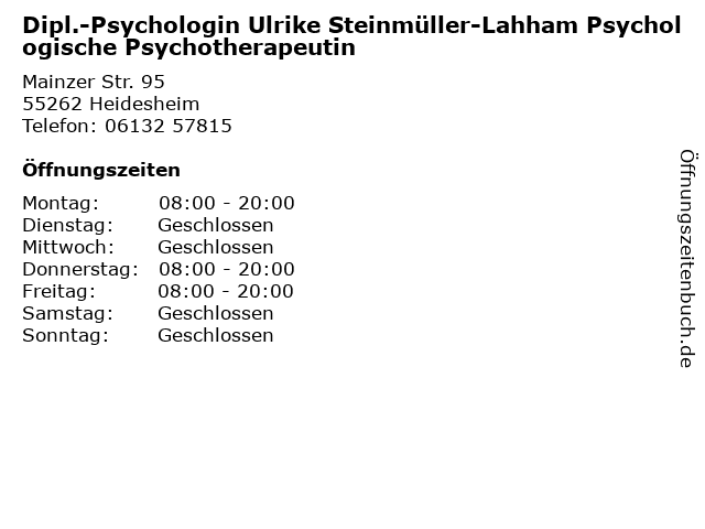 Branchen & Suchbegriffe zu Dipl.-Psychologin Ulrike Steinmüller-Lahham Psychologische Psychotherapeutin:dipl, dipl., lahham, psychologin, psychologische, psychotherapeuten, psychotherapeutin, steinmüller, ulrike |