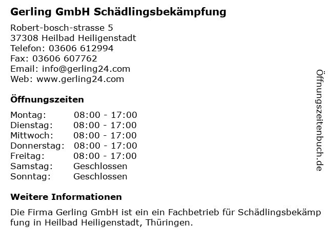 Branchen & Suchbegriffe zu Gerling GmbH Schädlingsbekämpfung:gerling, schädlingsbekämpfung, schädlingsbekämpfungsdienst, termite steuerservice, tierkontrolldienst, vogelkontrolldienst |