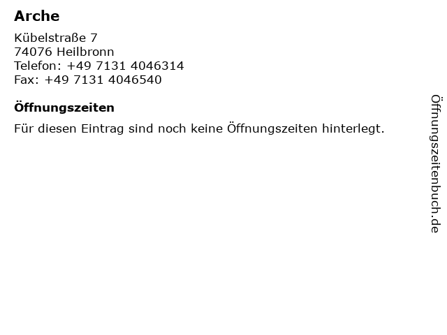 | Öffnungszeiten Arche in Heilbronn anzeigen | |